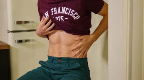 Very handsome guy with a hot body with a little bit of hair here and there gets naked, jerks off his cock, and cums on his tummy. This wanker is from the porn site BoyFun